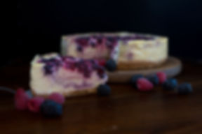 Fresh blueberry compote swirled throughout our classic cheesecake, baked on a graham crust.